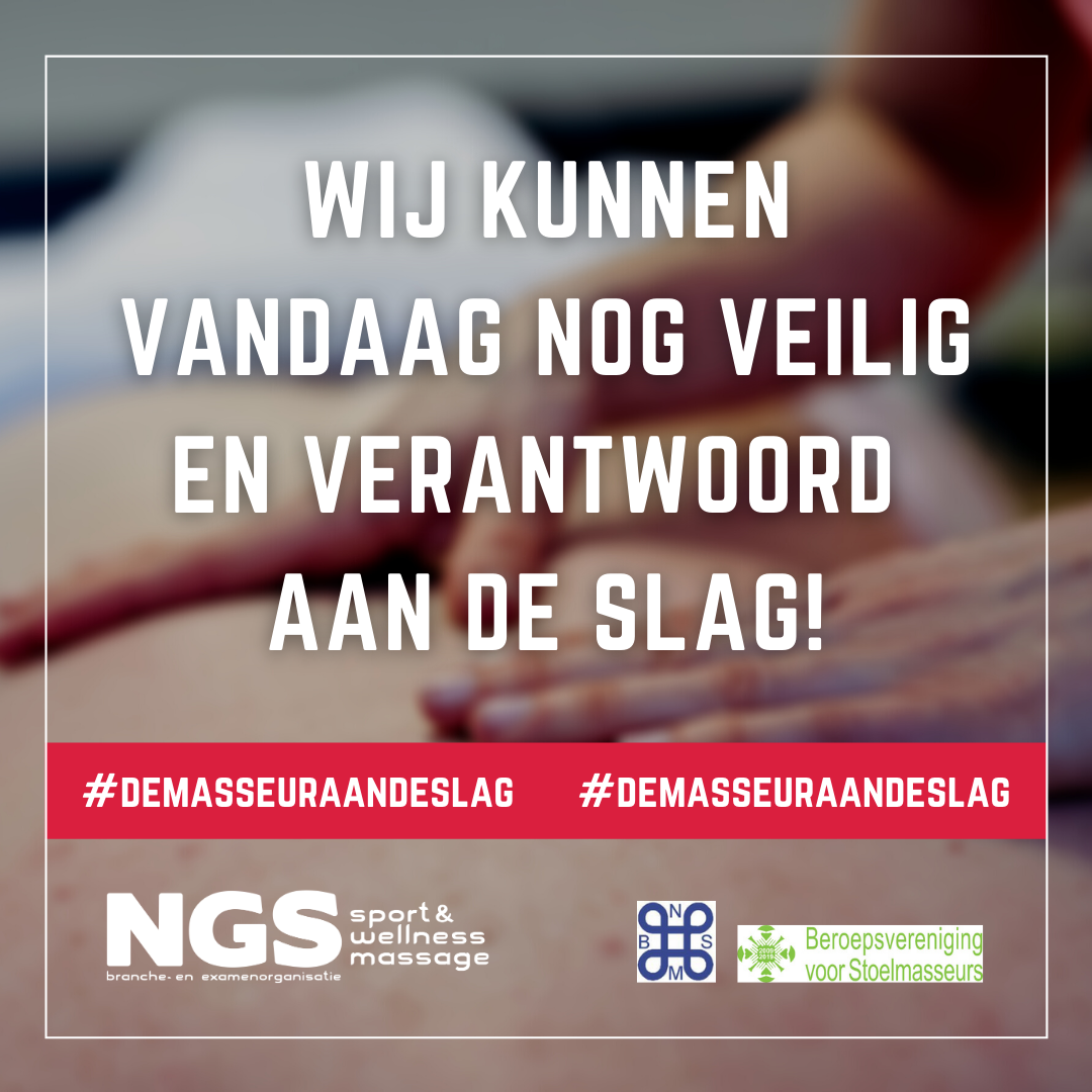 De masseur kan aan de hand van de leidraad op een veilige en verantwoorde manier vandaag nog het werk. Wij zijn er klaar voor!